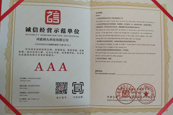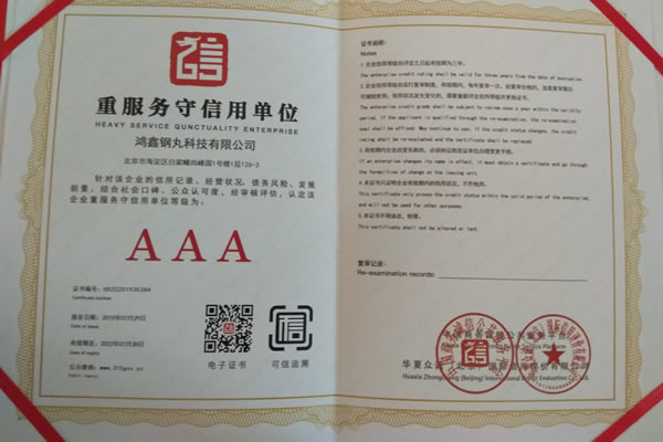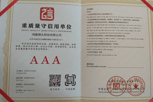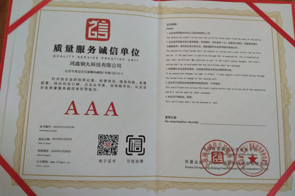 公司所有產品均通過ISO9001 **質量認證,2014年更獲得了第三屆中國金屬磨料行業具有影響力品牌-華尊獎